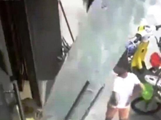 Sự việc hi hữu trên đã được ghi lại bởi máy quay an ninh nằm bên ngoài một cửa hàng mua sắm tại thành phố Quảng Châu, tỉnh Quảng Đông, Trung Quốc.