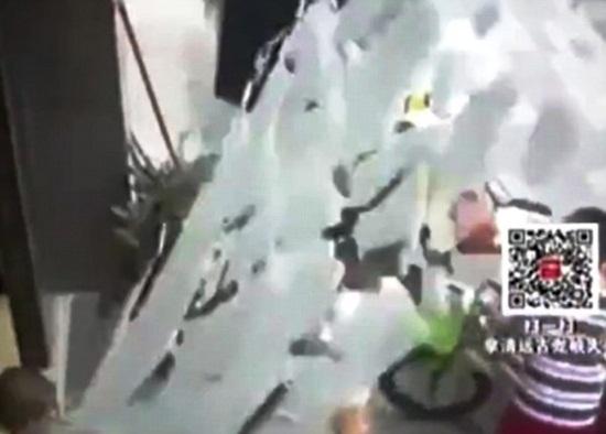Tuy nhiên, thay vì mở ra như bình thường thì cánh cửa kính lại đổ sập xuống và rơi trúng đầu một cậu bé đang đứng bên ngoài khu vực này.