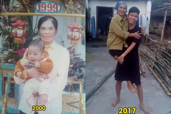 Quả thực, sau 17 năm, cậu nhóc phía bên trái đã thay đổi quá nhiều, còn người mẹ thì đã già đi trông thấy, duy chỉ có nụ cười không hề thay đổi chút nào.