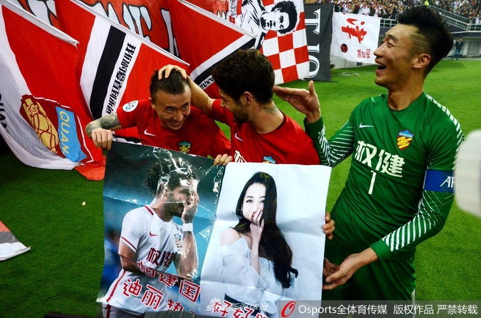 Ở trận đấu tối 14/3 vừa qua, Pato còn mang tấm poster ghép giữa anh và Địch Lệ Nhiệt Ba trong tâm trạng vô cùng phấn khích.