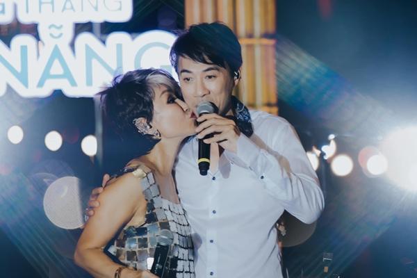 Tô Chấn Phong và Khánh Hà không ngần ngại trao nhau cái ôm ngọt ngào trên sân khấu. Trước đó, Khánh Hà từng động viên chồng theo đuổi sự nghiệp âm nhạc, và giọng ca của anh được khán giả khắp nơi mến mộ.