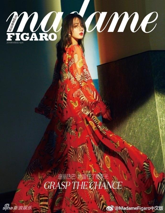 Địch Lệ Nhiệt Ba lần đầu lên trang bìa Tạp chí MadameFirago bản Trung Quốc tháng 4/2018.