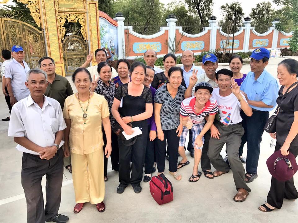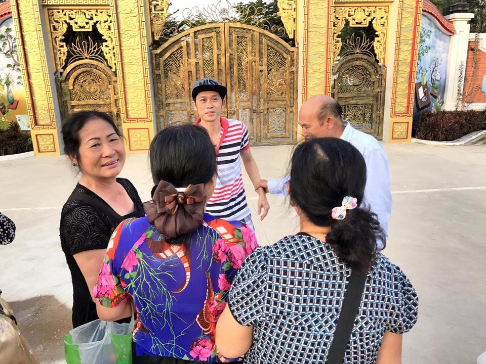 "Cám ơn các cô chú, anh, chị từ Đồng Kỵ, Bắc Ninh vào thăm đền thờ Tổ sân khấu (Tâm Linh Việt). Cháu xin gửi ảnh các cô, chú, anh, chị qua Facebook vì không có cách nào chuyển lời đến ạ. Hoài Linh cũng gửi lời xin lỗi đến cả đoàn vì cháu đang tưới cây nên quần áo không chỉnh chu để đón tiếp, mong quý vị thông cảm. Xin nhờ quý vị ở Đồng kỵ, Bắc Ninh nếu quen với các cô, các chú trong ảnh thì chuyển hộ Linh nhé. Cám ơn cả nhà", Hoài Linh chia sẻ.