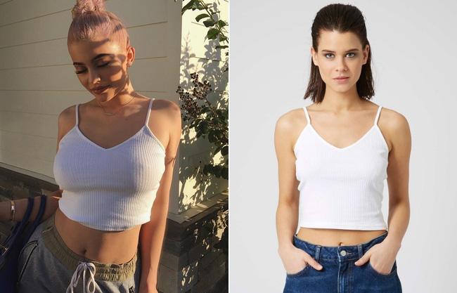 khi mặc chiếc crop top màu trắng đang được giảm giá chỉ còn 90.000 VNĐ/chiếc của Topshop.