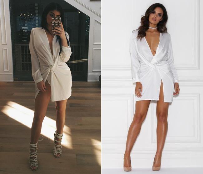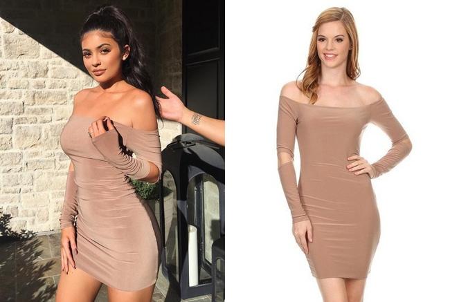 Nếu nhìn qua, hẳn nhiều người sẽ nghĩ chiếc váy trễ vai màu nude vô cùng sexy này của Kylie phải thuộc về một thương hiệu