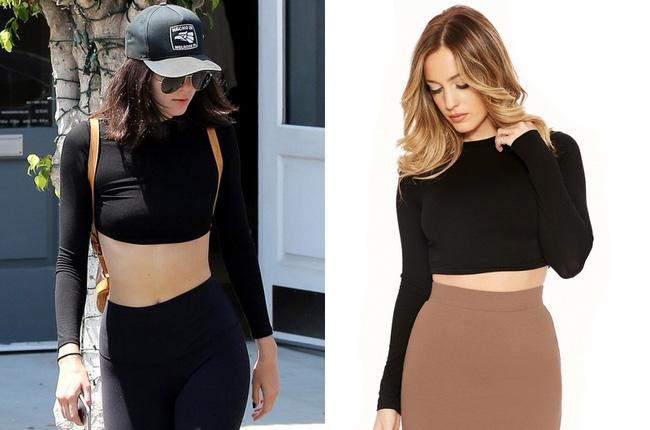 Giống cô em Kylie, Kendall Jenner cũng rất kết các món đồ ngon-bổ-rẻ. Chiếc áo trễ vai ôm sát màu đen cô nàng
