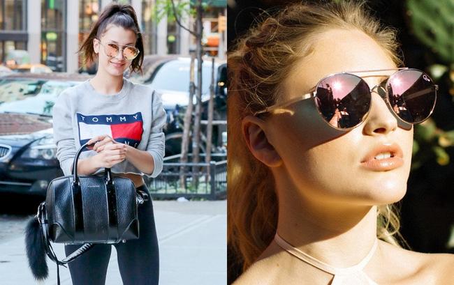 Chiếc kính mặt gương màu rose gold rất trendy mà cô nàng đeo trong hình đến từ Quay,