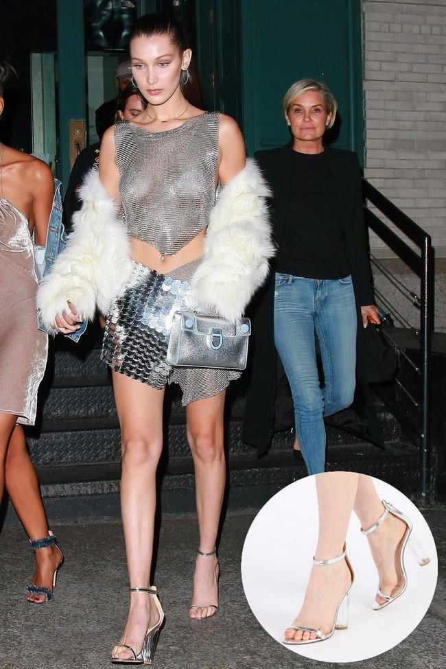với sandal cùng tone. Mặt dù trông rất đắt tiền nhưng kỳ thực đôi sandal với phần gót trong suốt cực kỳ on-trend