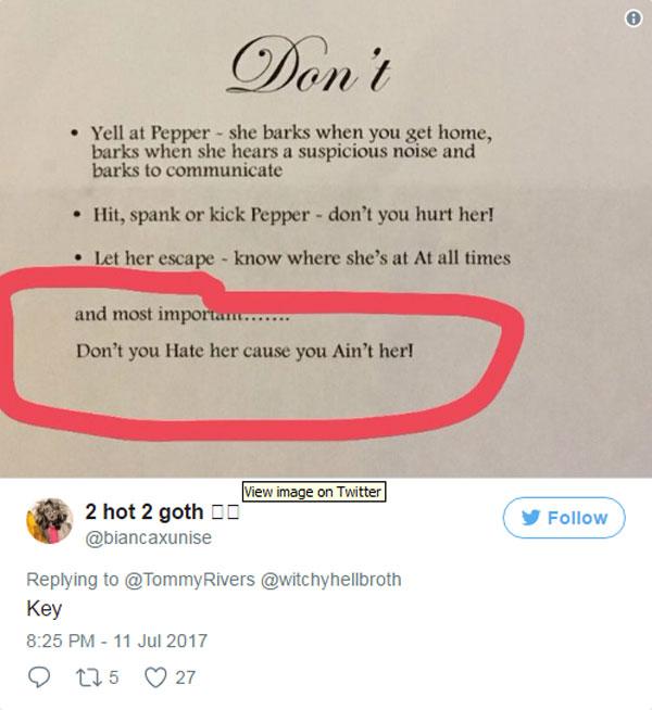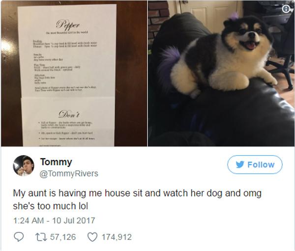 Tommy Rios – người nhận nhiệm vụ trông nhà và trông chó hộ Diaz đã đăng ảnh Pepper cùng tờ giấy ghi chú những yêu cầu cần làm và không được làm khi chăm sóc Pepper lên Twitter và đã có một lượng tương tác đáng kể. Tất cả cư dân mạng đều cảm thấy hài hước khi đọc nội dung tờ giấy nhắn.