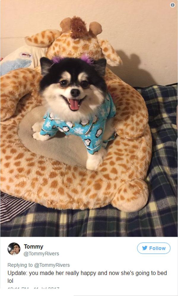Cập nhật mới nhất của Tommy với bức ảnh Pepper chuẩn bị đi ngủ