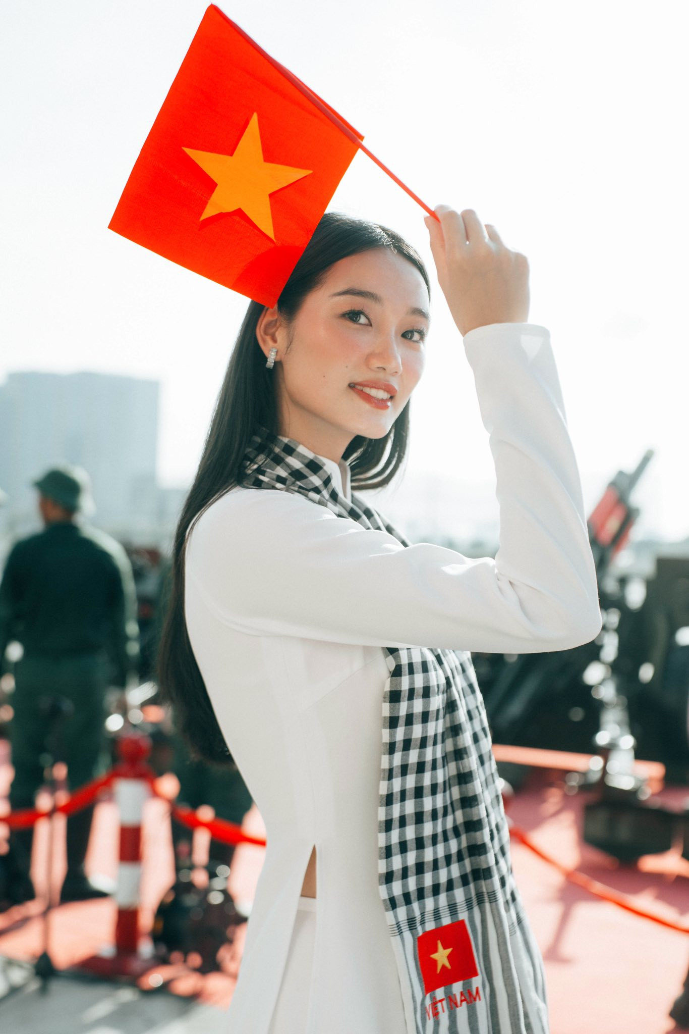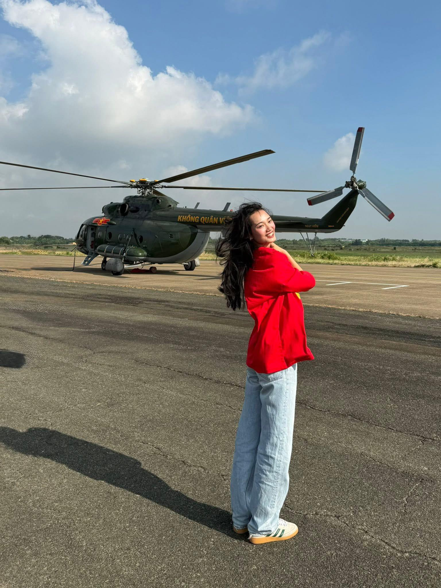 Cô là một người đẹp hiếm hoi được vinh dự đi trên chiếc trực thăng của lực lượng không quân Việt Nam khiến nhiều người không khỏi ngưỡng mộ.