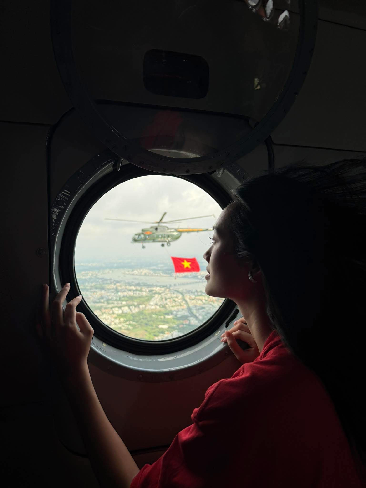 Mới đây, trên trang cá nhân, á hậu Quỳnh Anh chia sẻ về chuyến trải nghiệm của mình trên trực thăng. Người đẹp hạnh phúc nói: “Vinh dự khi được ngồi trên chiếc trực thăng mang lá cờ Tổ quốc, được ngắm nhìn tận mắt những khung cảnh thiên nhiên, hòa mình vào không khí của ngày ‘concert Quốc gia’. Tự hào lắm vì là người Việt Nam”.
