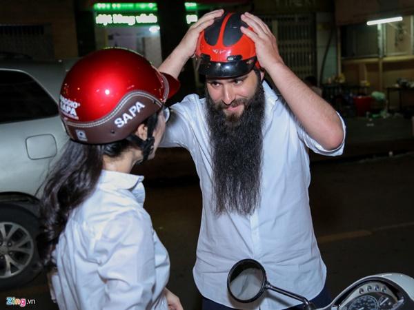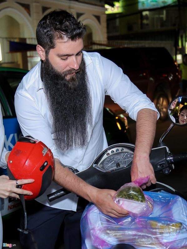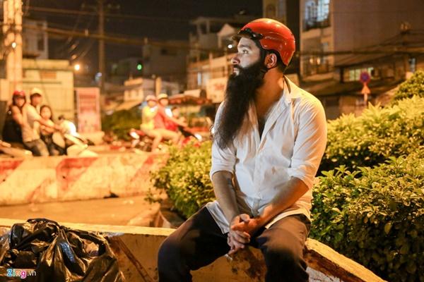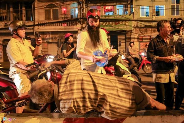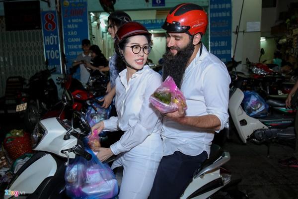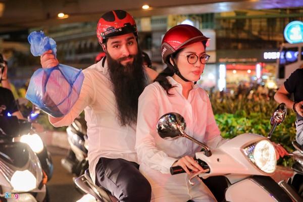 Khuya 13/5, đạo diễn Kong: Skull Island Jordan Vogt-Roberts đi dọc nhiều tuyến đường từ quận 1 sang quận 6 để gửi cơm từ thiện cho những người vô gia cư. Đạo diễn người Mỹ di chuyển bằng xe máy, do người đẹp Emily Hồng Nhung cầm lái.