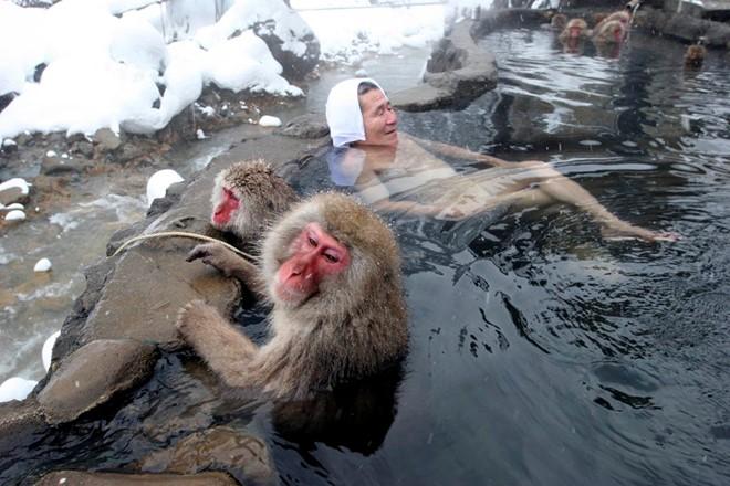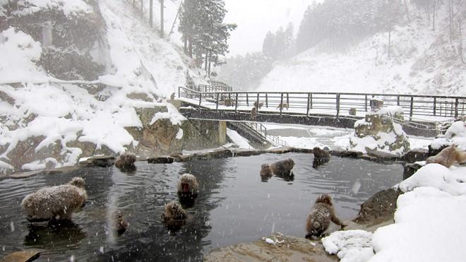 Suối khỉ: Nagano cách Tokyo 90 phút đi tàu siêu tốc là nơi tổ chức Thế vận hội mùa đông 1988. Tuy nhiên, vùng đất này lại thu hút du khách nhờ những chú khỉ tuyết Nhật Bản. Ảnh: Girlychat/Wordpress.