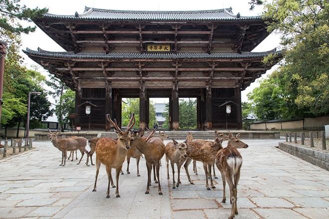 Công viên hươu: Cách Nagano 4 tiếng đi tàu (bạn nên chọn ghế cạnh cửa sổ để ngắm khung cảnh tuyệt đẹp dọc đường), công viên hươu Nara là nơi sinh sống của hơn 1.200 chú hươu sika. Theo truyền thuyết, một vị thần tên Takemikazuchi đã tới cố đô của Nhật Bản dưới dạng một con hươu trắng để bảo vệ vùng đất này. Điều đó khiến những chú hươu hoang dã được coi là bảo vật quốc gia, có luật bảo vệ. Ảnh: Travelcaffeine.