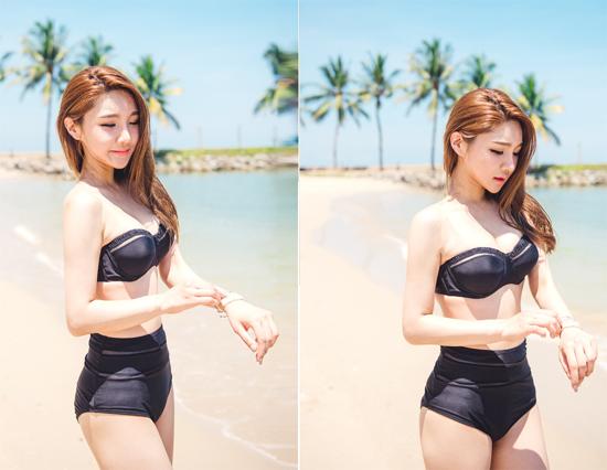 Ngay cả khi có vòng eo to, bạn cũng đừng e ngại khoe dáng cho những ngày đi biển. Bởi, chỉ cần "kết thân" với mẫu phù hợp, bạn sẽ có thể che lấp điểm chưa hoàn hảo của mình. Mẫu lý tưởng nhất cho người có vòng hai "bánh mỳ" là những chiếc áo tắm liền thân, quần bikini có cạp cao hoặc mẫu áo tắm tankini. Mặt khác, gam màu tối, họa tiết nhỏ xinh nên được ưu tiên để tạo cái nhìn thon thả hơn về vòng eo.