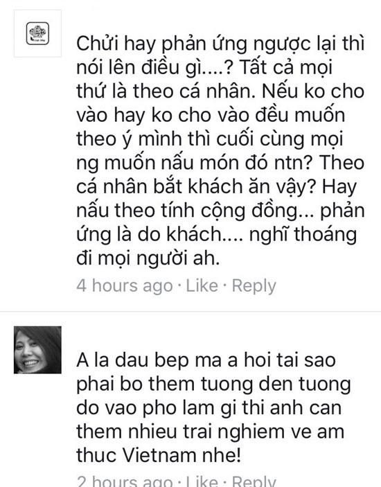 “Thực tế là đoạn video này chỉ là ghi lại cách tôi nấu phở, và tôi đã nhấn mạnh nhiều lần rằng tôi chỉ là một trong hàng triệu người nấu món ăn này. Sự ầm ĩ quanh đoạn video thật điên rồ. Chúng tôi sẵn sàng cung cấp nước tương hay tương ớt cho bất cứ vị khách nào bước vào quán và yêu cầu chúng."