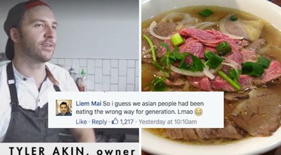 “Người Việt Nam, chúng ta ăn phở sai cách hết rồi kìa. Nghe một người da trắng dạy chúng ta cách ăn món ăn quen thuộc mới sốc làm sao.”