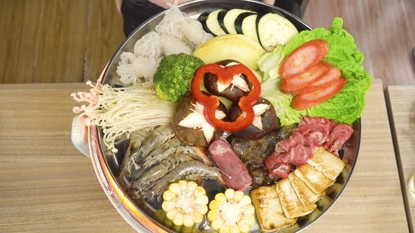 Khay đồ nướng hấp dẫn của Tiểu Dã sau thời gian ngắn chế biến (ảnh cắt từ clip)