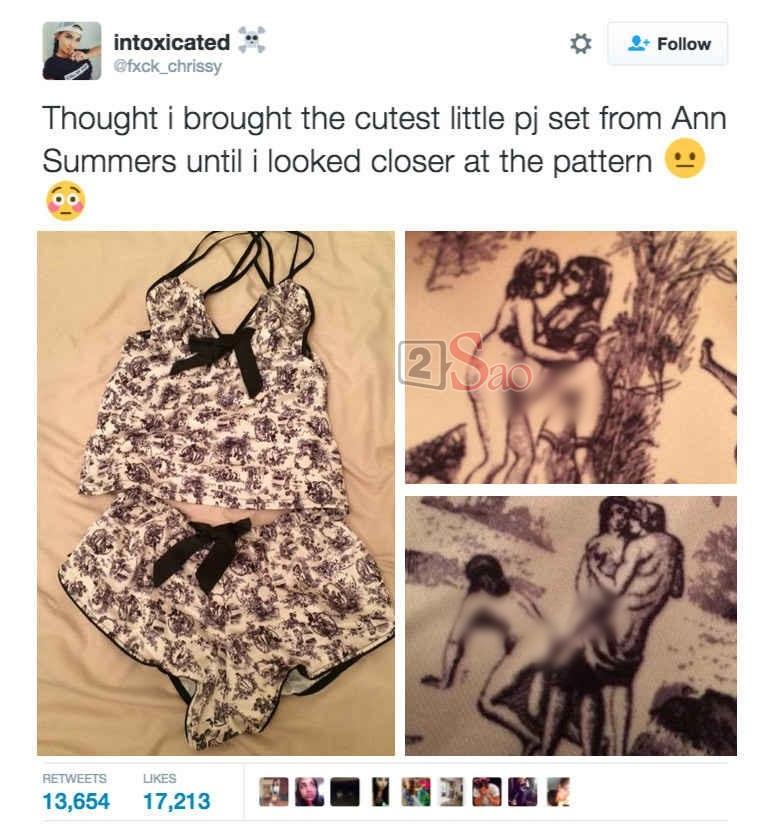 Mua bộ đồ ngủ online xinh xinh nhưng đến khi soi kỹ phần họa tiết trên đó thì hú hồn