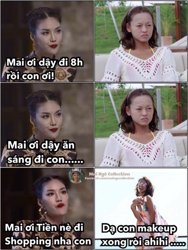 Sự kết hợp quá tuyệt vời giữa biểu cảm “ghét ra mặt” của Lan Khuê với Mai Ngô không chân mày.