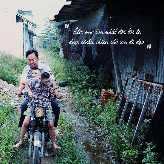 Ước mơ giản dị của anh là chiều chiều chở con đi dạo cho tâm trạng con vui vẻ, đỡ bức bối giữa bốn bức tường.