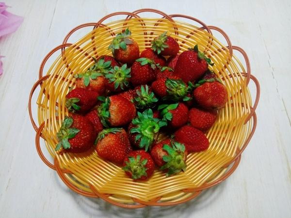 Dâu tây khi chín rất ngon sẽ không quá chua, rửa qua nước muối loãng rửa lại cho sạch, để ráo.