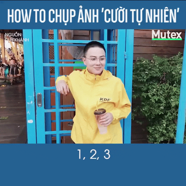 "Nãy giờ chụp hình nhiều rồi tôi mới nghiệm ra chân lý là khi chúng ta muốn có 1 tấm hình chụp đẹp phải biết cười tự nhiên và tương tác với những đồ vật xung quanh. Mà có bạn cười xong kiểu cười rất gượng gạo. Cười lên nhìn không được tự nhiên lắm thì tôi hướng dẫn cho các bạn cách tự nhiên hơn nha", Duy Khánh dẫn lời.