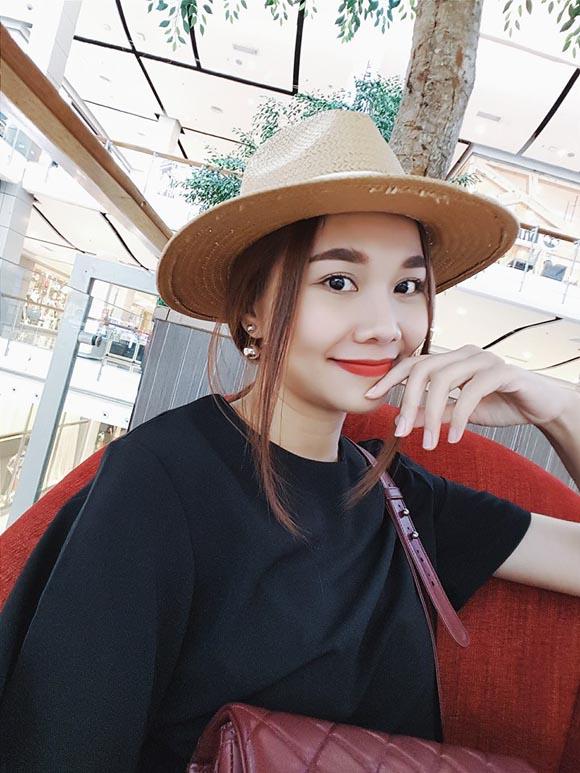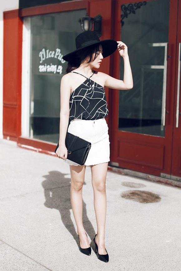 Mặc dù ăn mặc khá đơn giản nhưng Thanh Hằng vẫn nổi bật và cá tính nhờ sự tô điểm của chiếc mũ