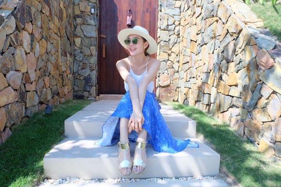 Hà Tăng cũng dịu dàng không kém khi kết hợp chiếc váy sáng màu cùng mũ Panama tạo nên dáng vẻ đầy mơ mộng