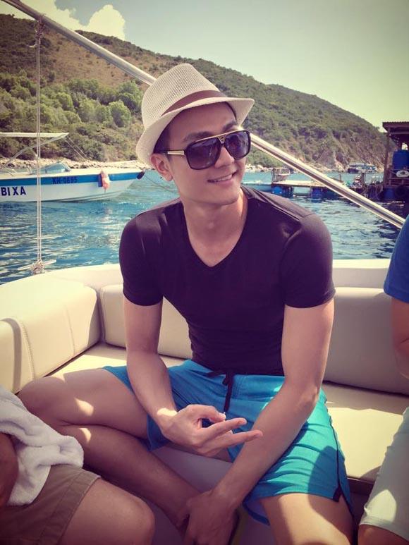 Vĩnh Thụy lựa chọn chiếc mũ đa năng này cho chuyến đi biển của mình. Dáng vẻ khỏe khoắn nghịch ngơm của anh chàng khiến các fan nữ chết mê