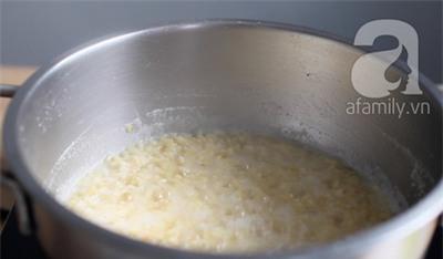 Vớt đậu ra và cho vào nồi. Đổ nước xâm xấp mặt đậu, đun trên lửa nhỏ. Thỉnh thoảng xới đậu để tránh đậu dính vào đáy nồi dễ bị cháy.
