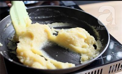 Sên đậu xanh với đường trong chảy chống dính, trên lửa nhỏ. Đảo liên tục để không bị cháy đến khi đậu xanh dẻo thành 1 khối là được. Thêm tinh dầu bưởi nếu bạn thích.