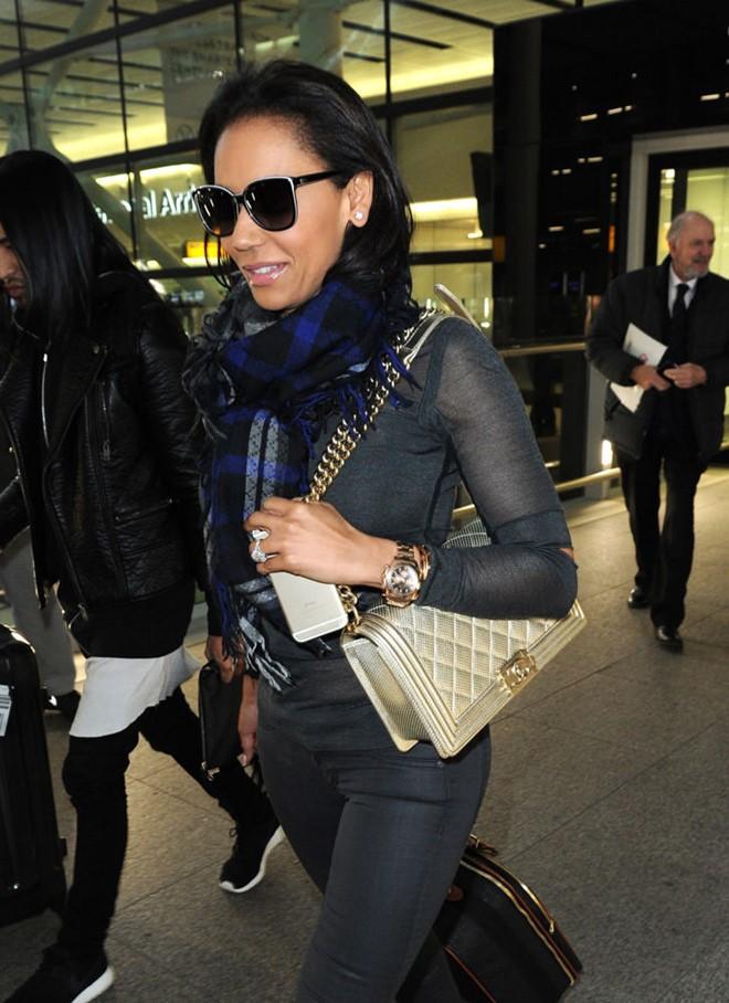 Mel B nổi bật với cây đen và túi Chanel Boy màu bạc.