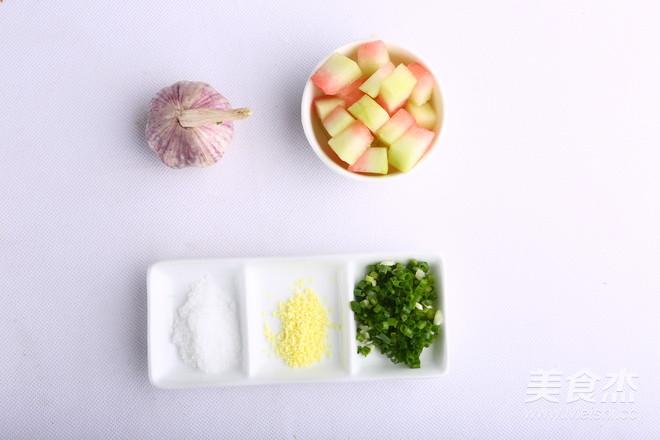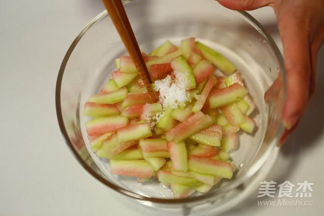 Bước 3: Cắt cùi dưa thành từng miếng nhỏ, ướp tí muối vào trong tầm 10 phút