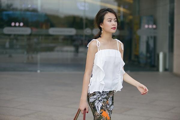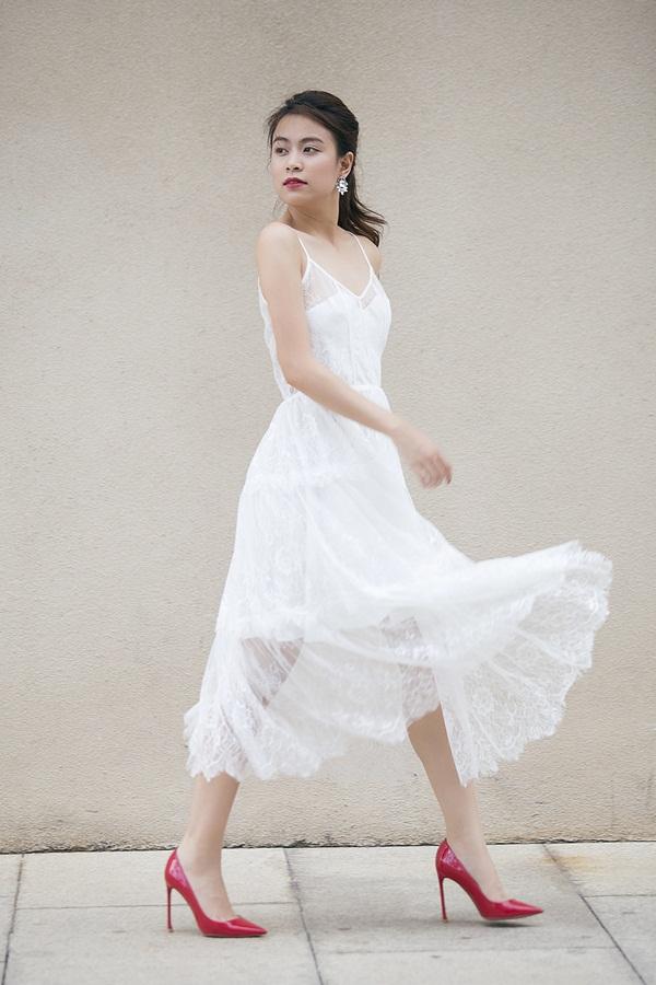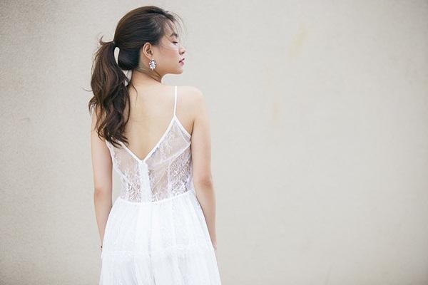 Hay một sự lựa chọn khác với chân váy và áo hai dây trắng mềm mại