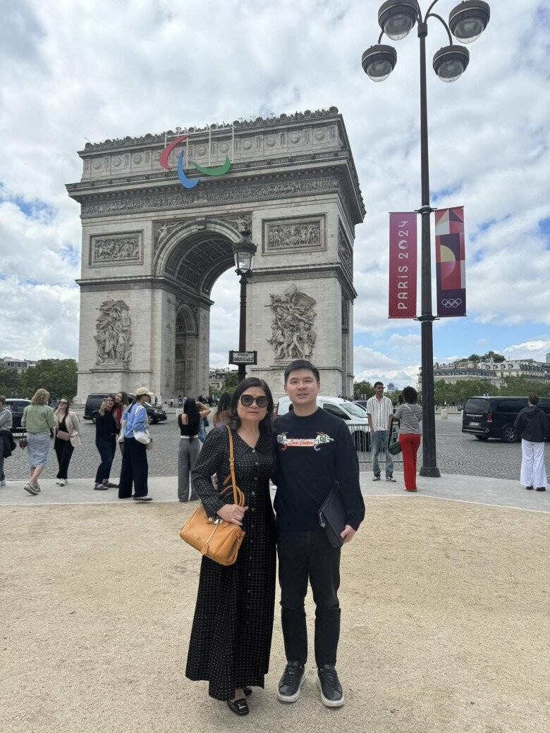 Theo đó, ông xã Đỗ Mỹ Linh khoe khoảnh khắc bên mẹ ở trời tây kèm dòng trạng thái: "Chúc mừng sinh nhật Mẹ yêu" và tag hẳn phu nhân Bầu Hiển.