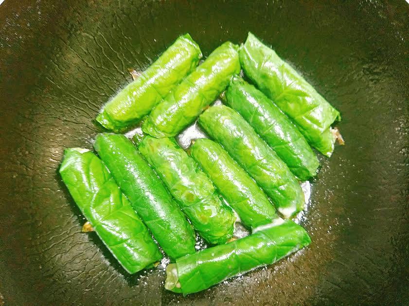 Đặt chảo lên bếp và cho khoảng 2-3 thìa dầu ăn, đun cho nóng dầu sau đó bạn xếp từng cái chả vào chảo chiên cho chả chín đều, lật chả và chiên tiếp tới khi chả chín thơm lừng căn bếp thì gắp chả lá lốt ra đĩa.