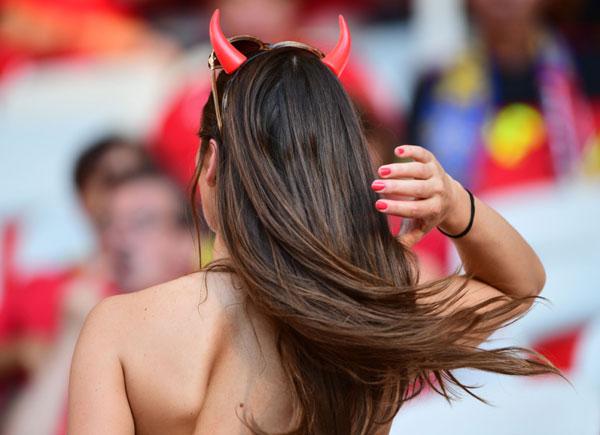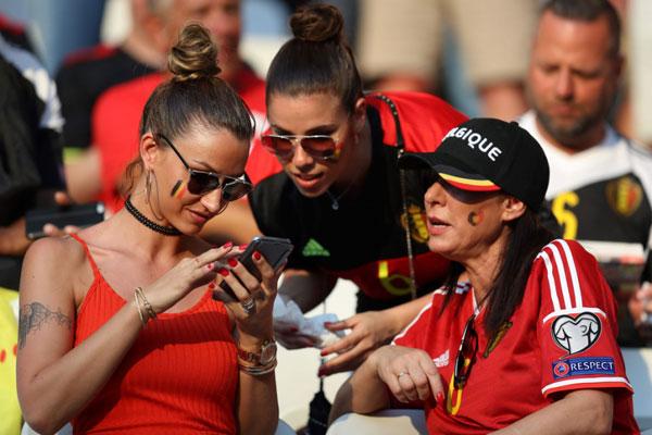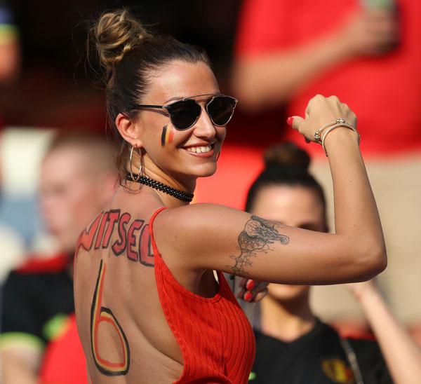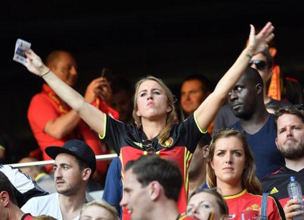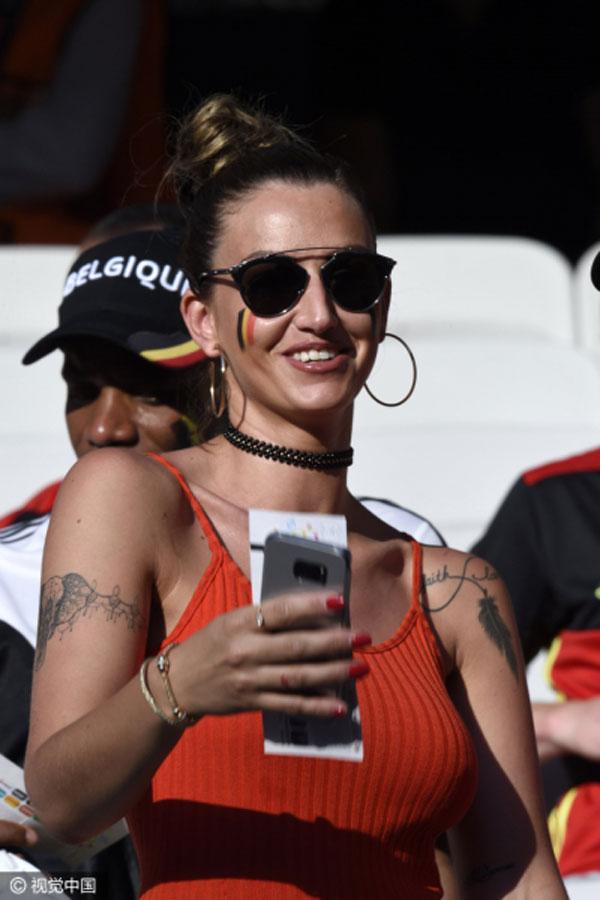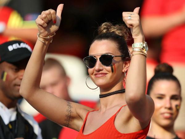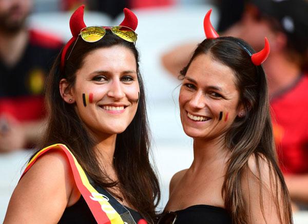 Bên phía khán đài tuyển Bỉ còn rất nhiều nữ cổ động viên xinh đẹp khác.
