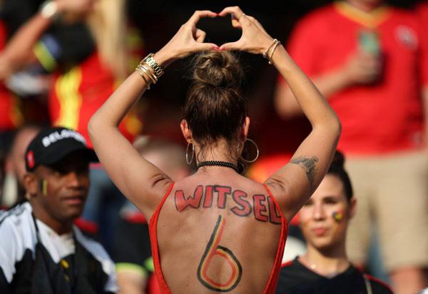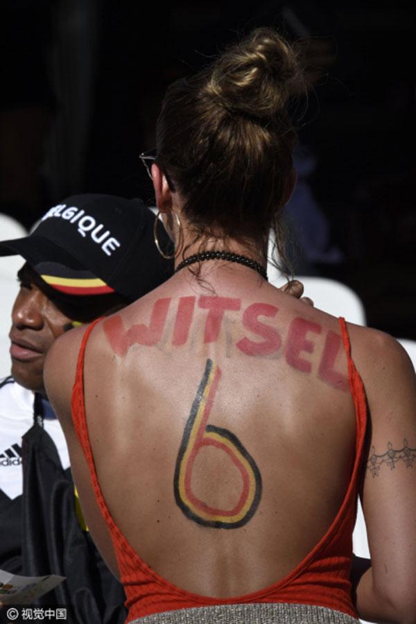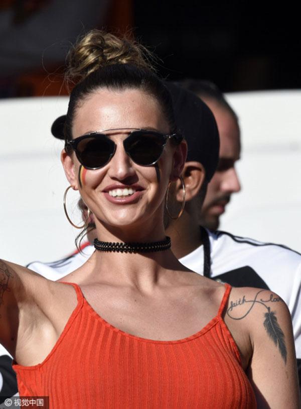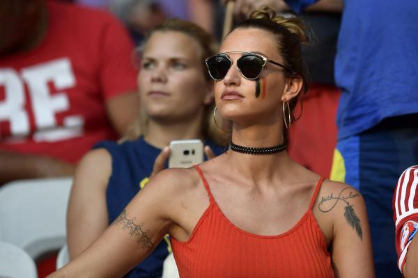 Trung tâm của sự chú ý trên khán đài hôm qua phải kể đến Rafaella Szabo, cô vợ xinh đẹp và bốc lửa của Axel Witsel, tiền vệ số 6 của đội tuyển Bỉ và hiện đang chơi cho CLB Zenit Saint Petersburg (Nga).