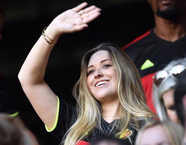 Katrin Kerkhofs, vợ của tiền vệ cánh đội Bỉ Dries Mertens cũng có mặt trên khán đài.