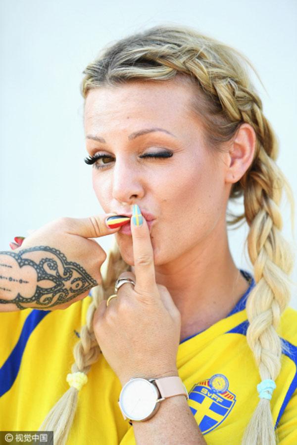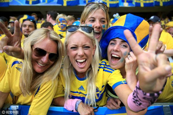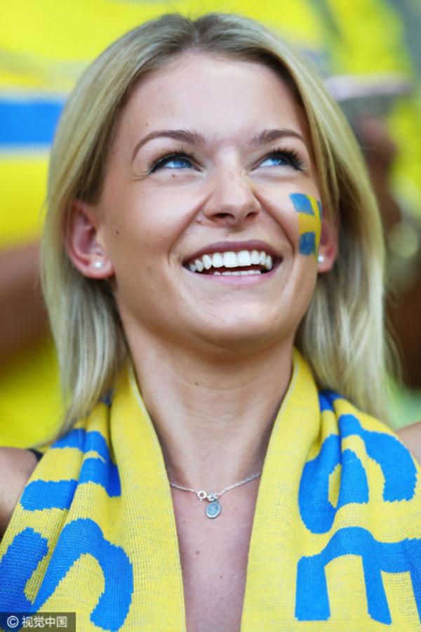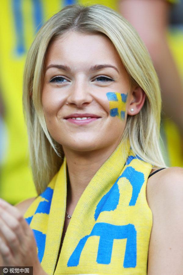 Về phía Thụy Điển, những cô gái Bắc Âu với mái tóc vàng cũng làm bừng sáng của khán đài.