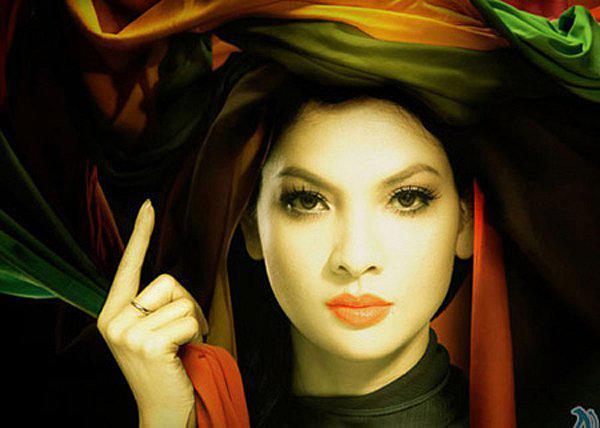 Thủy Hương khiến người xem xao xuyến trong bức tranh sơn dầu với những đường nét chuẩn mực của người phụ nữ Á đông.