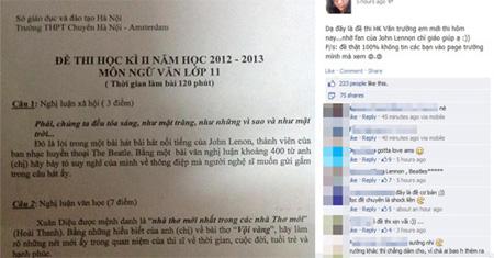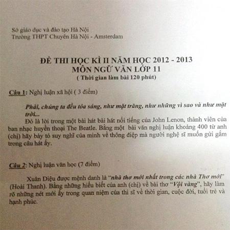 Những ngày qua, một học sinh lớp 11 trường THPT chuyên Hà Nội – Amsterdam đã đăng tải đề thi học kỳ II môn Ngữ văn lên mạng xã hội. Ngay lập tức nhận đề thi này đã nhận được sự chú ý của các bạn trẻ đặc biệt là giới học sinh.