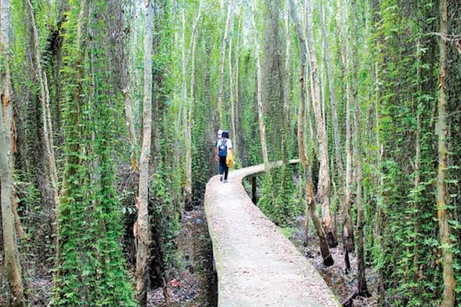 Với chiều dài khoảng 5km, con đường này uốn lượn, đâm xuyên qua khu rừng tràm. Du khách đến đây sẽ ngỡ như đang lạc bước vào một thế giới khác, lọt thỏm giữa sắc xanh miên man ngút ngàn của cây cối. Con đường tạo ra một thế giới bí ẩn như đang sẵn sàng giang tay chào đón khách du lịch ghé thăm.