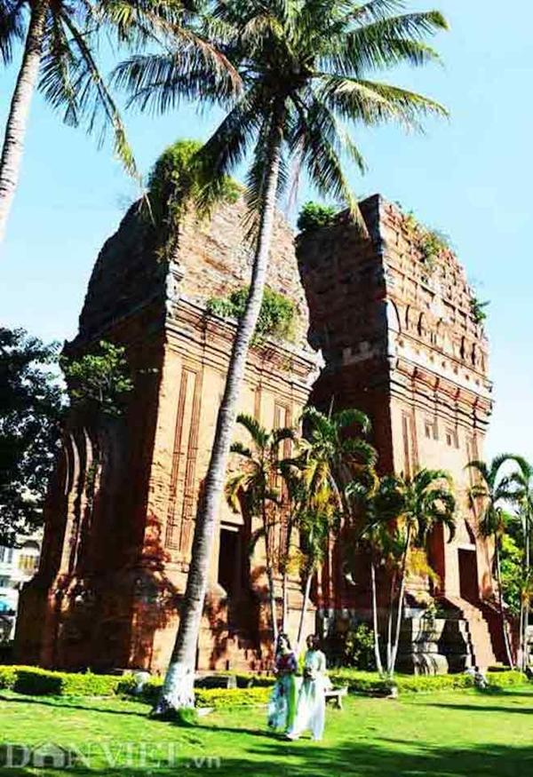 Địa điểm du lịch này của Bình Định có kiến trúc khá đặc biệt và lạ mắt. Khi nhìn từ xa, quần thể 4 ngọn tháp giống chiếc banh ít nên tháp còn có tên gọi Tháp Bánh Ít. Mỗi kiến trúc trong tháp lại là một loại hình kiến trúc riêng biệt, là một sắc thái nghệ thuật khác nhau.