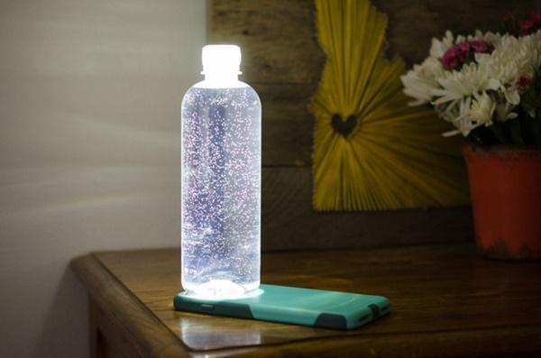Chúng ta có thể dùng bình nhựa có chứa nước, sau đó đặt lên đèn flash đang mở để ánh sáng có thể tỏa đều và không bị chói mặt. Loại đèn này rất thích hợp để dùng trong những buổi cắm trại để thay thế cho lửa trại đấy!