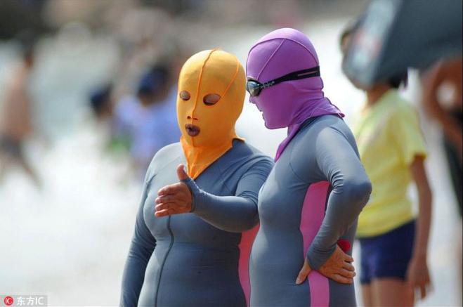 Trong thời gian mà chỉ cần bước ra đến ngoài cửa, bạn có cảm giác như đang ở lò nung với thời tiết bây giờ, bãi biển luôn là điểm đến yêu thích cho tất cả mọi người. Nhưng khác với các bãi biển khác, những bãi biển ở thành phố Thanh Đảo lại bỏng mắt với những bộ áo tắm màu mè, được trùm lên đến tận mặt của các du khách Trung Quốc. Người ta gọi là mốt áo tắm "Ninja đi biển" tái xuất!