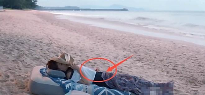 Khi Andy nằm ngủ trên bãi biển, hai tay cô đan vào nhau.