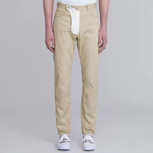 Phần khóa quần được may đắp thêm một phần vải khác màu rất nổi, rất gây chú ý.
